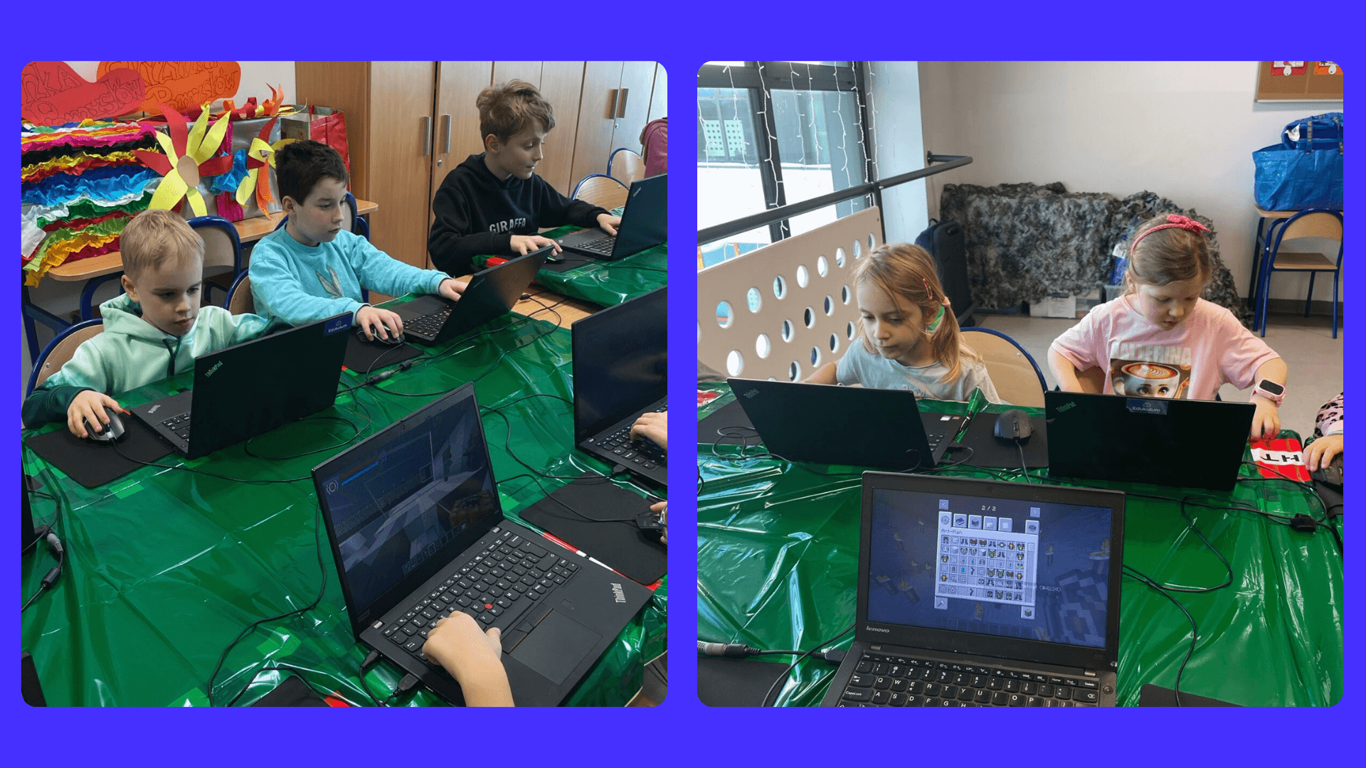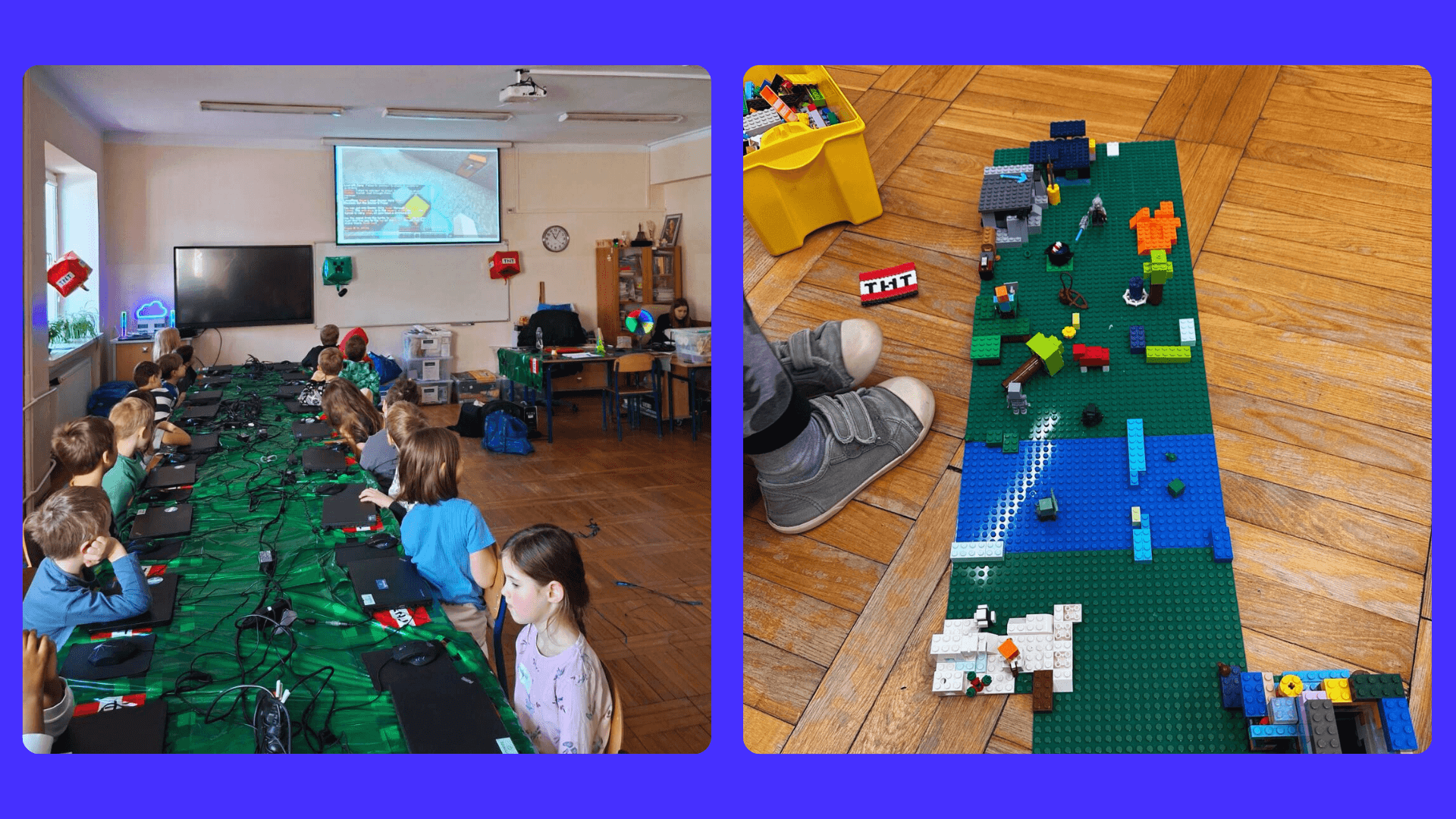 Naszym celem jest łączenie nauki z zabawą – i to zdecydowanie znów się udało! Program półkolonii został zaplanowany tak, aby każdy dzień przynosił nowe doświadczenia. Dzieci z entuzjazmem brały udział w programowaniu i nauce języka angielskiego w Minecraft, rywalizowały i współpracowały w trybie Multiplayer, a także budowały i programowały konstrukcje podczas zajęć Robotyki Young Creators.
